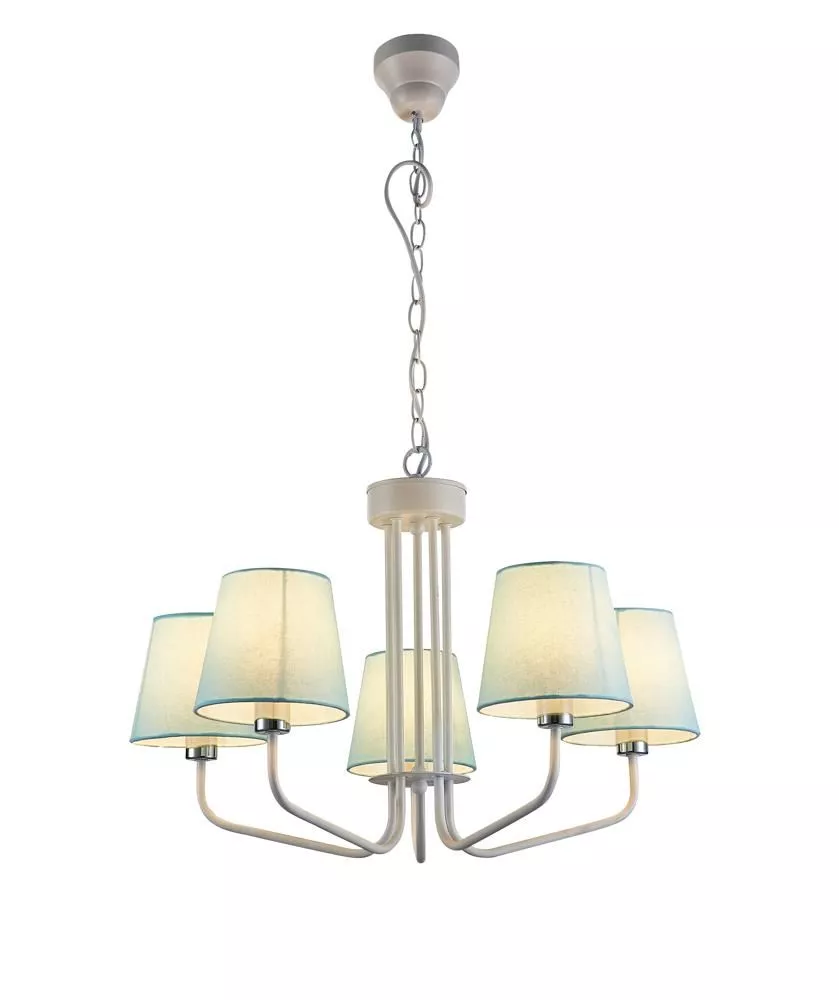 Závěsný pětiiramenný lustr na řetězu LUMINOR - 5xE14, 60W, bílý / modrý