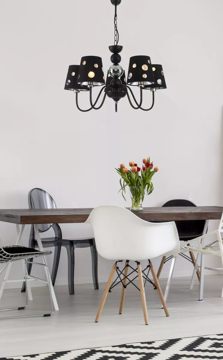 Zkrášlete svůj domov se závěsným svítidlem BATLEY! Kovová konstrukce s 5 rameny nese stínidla s jemným děrováním, které nechává světlo volně procházet a vytváří působivou hru odlesků a stínů. Skvěle se hodí nad jídelní stůl nebo do obývacího pokoje, kde dodá prostoru noblesu i útulnost. Určeno pro 5 žárovek s paticí E14 a maximálním výkonem 60 W. Pro úsporu el. energie doporučujeme osadit úspornou LED žárovkou. Krytí IP20 značí vhodnost použití v interiéru.