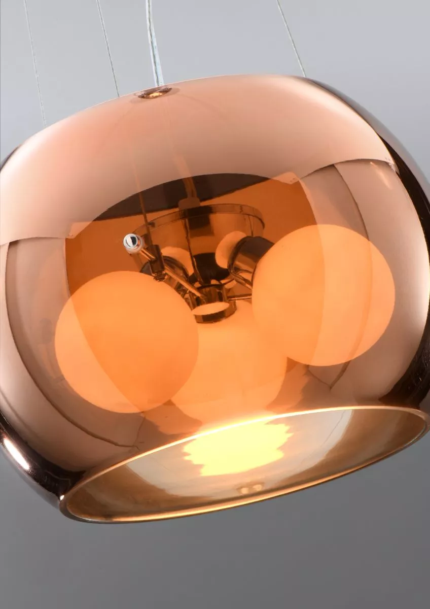 Závěsné svítidlo GEMO spojuje čistý kulatý tvar a zlaté sklo, které propouští světlo ve 3 bodech a vytváří jemnou hru odlesků. Výborně se hodí nad jídelní stůl nebo do ložnice, kde podtrhne moderní a elegantní vzhled interiéru. Je vybaveno třemi paticemi G9 pro žárovky s maximálním příkonem 40 W každá. Pro úsporu el. energie doporučujeme osadit úspornou LED žárovkou. Krytí IP20 značí vhodnost použití v interiéru.