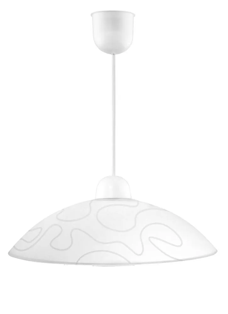 Objevte stylové osvětlení MALIBU – elegantní závěsné svítidlo s bílým skleněným stínidlem zdobeným jemným vzorem. Vhodné pro zavěšení nad jídelní stůl, v obývacím pokoji nebo v klidovém koutku ložnice, kde vytvoří jemný a vyvážený světlý akcent. Určeno pro žárovku s paticí E27 a maximálním výkonem 60 W. Pro úsporu el. energie doporučujeme osadit úspornou LED žárovkou. Krytí IP20 značí vhodnost použití v interiéru.