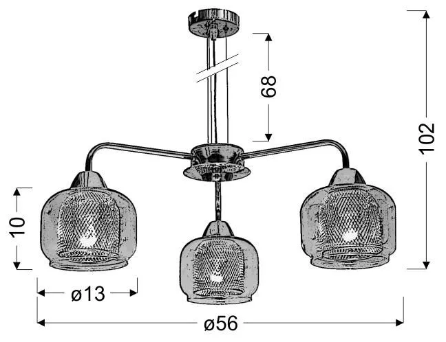 Závěsné tříramenné osvětlení RAY - 3xE14, 40W, chromované