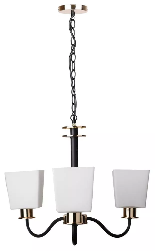 Zkrášlete svůj interiér tříramenným světlem SCHUBERT! Konstrukce v černém provedení s kontrastními bílými stínidly vytváří čistý geometrický tvar a působí výrazně i elegantně zároveň. Perfektní nad jídelní stůl, do obývacího pokoje nebo do vstupní haly, kde naplní prostor silným designovým prvkem. Určeno pro 3 žárovky s paticí E27 a maximálním výkonem 40 W. Pro úsporu el. energie doporučujeme osadit úspornou LED žárovkou. Krytí IP20 značí vhodnost použití v interiéru.
