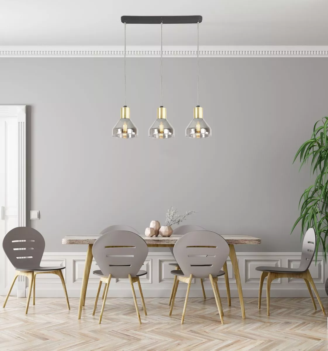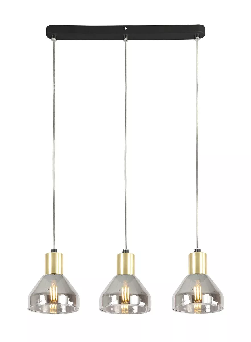 Moderní závěsné osvětlení nad jídelní stůl GREGORY - 3xE14, 40W, černé / mosazné