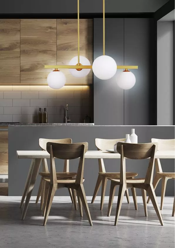 Vneste jednoduchou eleganci do jídelního prostoru s osvětlením KAMA! Svítidlo kombinuje skleněná stínidla s jemnými kovovými prvky, což působí v duchu moderního stylu inspirovaného japandi estetikou. Určeno nad jídelní stůl pro rovnoměrné osvětlení. Je vybaveno paticemi G9 pro žárovky s maximálním příkonem 28 W. Pro úsporu el. energie doporučujeme osadit úspornou LED žárovkou. Krytí IP20 značí vhodnost použití v interiéru.