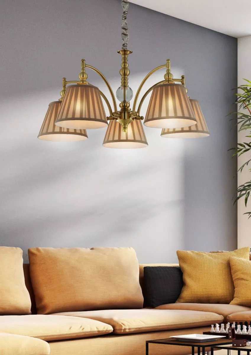 Zvýrazněte eleganci svého interiéru se závěsným osvětlením SHINELUX! Patinovaná kovová konstrukce v kombinaci s řetězem omotaným jemnou látkou vytváří sofistikovaný vzhled s nádechem vintage luxusu. Ideální nad jídelní stůl, do obývacího pokoje nebo do vstupní haly, kde přispěje k výrazné a vkusné atmosféře. Určeno pro 5 žárovek s paticí E14 a maximálním výkonem 40 W. Pro úsporu elektrické energie doporučujeme osadit úspornou LED žárovkou. Krytí IP20 značí vhodnost použití v interiéru.