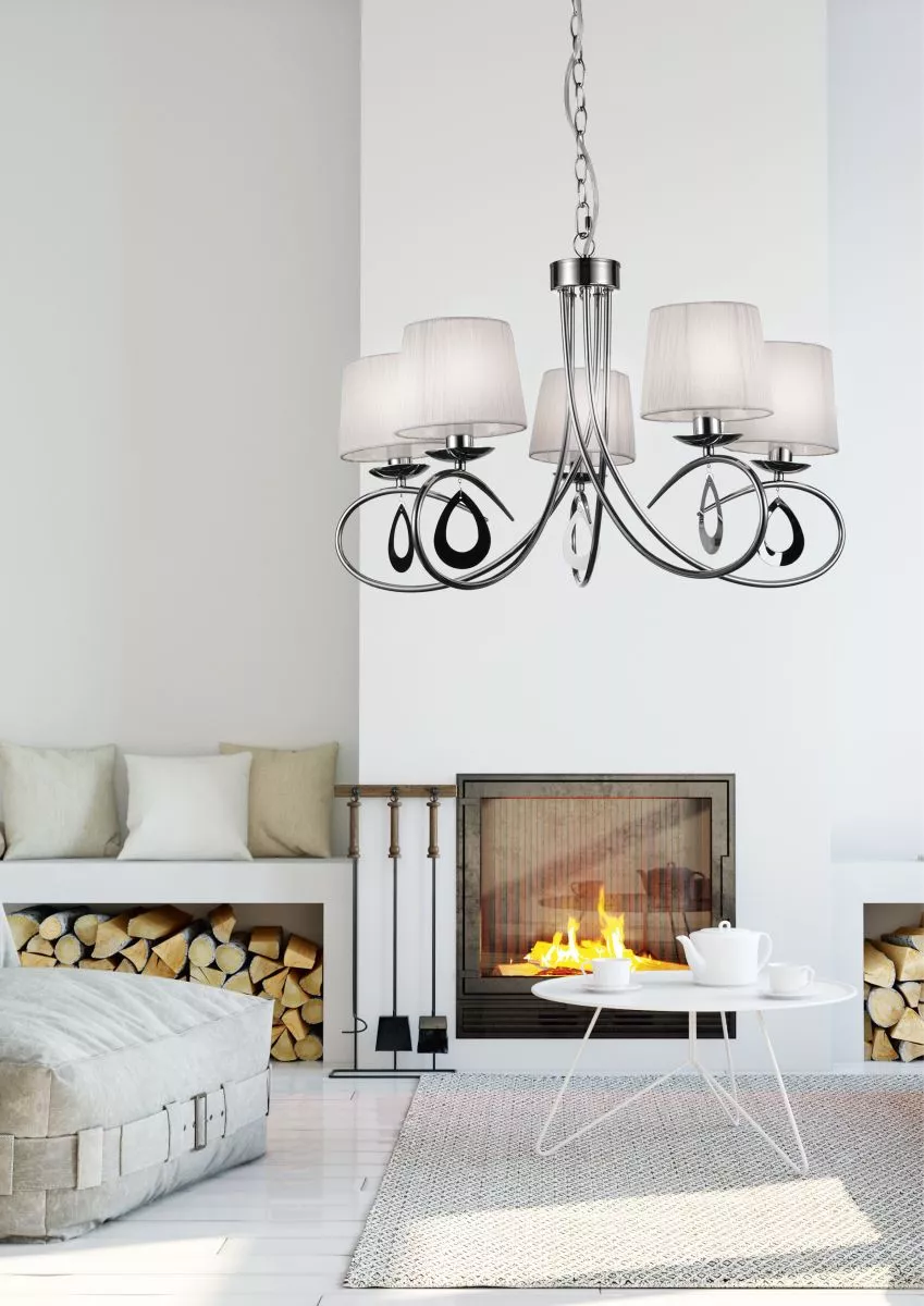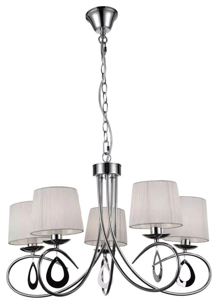 Závěsné pětiramenné svítidlo na řetězu ARNIKA - 5xE14, 40W, chromované / bílé