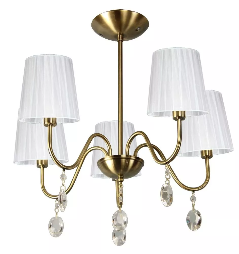 Závěsné pětiramenné osvětlení v glamour stylu SORENTO - 5xE14, 40W, patina / bílé