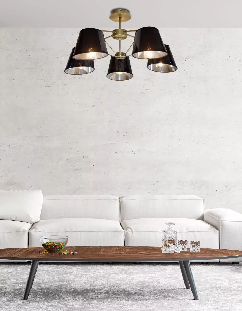 Oživte interiér stylovým závěsným svítidlem CORTEZ! Konstrukce s 5 rameny, každé zakončeno stínidlem s efektem zrcadlení a dekorativním lemováním, vytváří výrazný a elegantní prvek v místnosti. Doporučeno pro zavěšení nad jídelní stůl nebo do prostorného obývacího pokoje, kde uvítá dostatečný objem světla. Určeno pro 5 žárovek s paticí E14 a maximálním výkonem 40 W. Pro úsporu el. energie doporučujeme osadit úspornou LED žárovkou. Krytí IP20 značí vhodnost použití v interiéru.