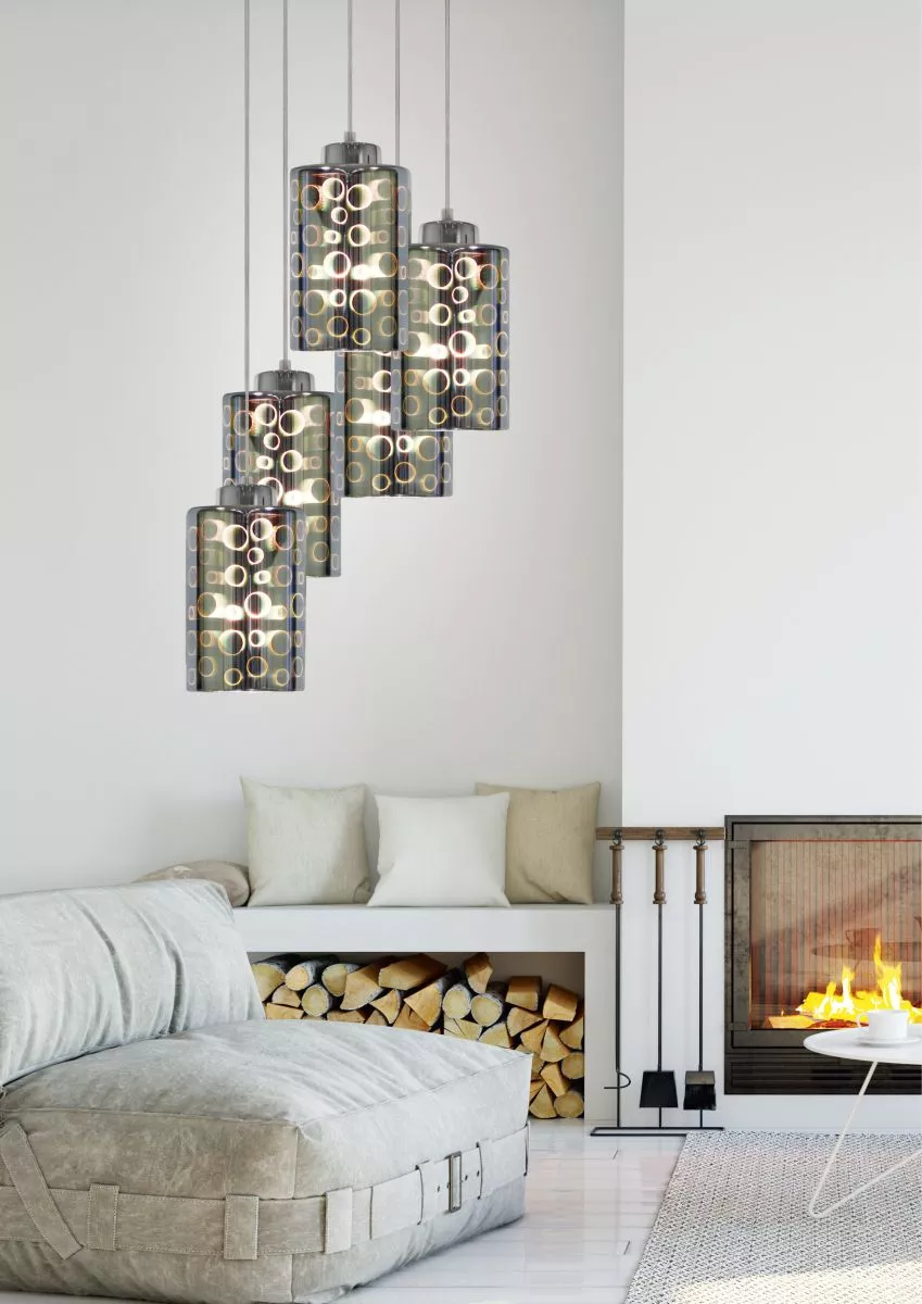 Zvýrazněte svůj interiér se závěsným svítidlem NOCTURNO! Kovová konstrukce v lesklém chromovaném provedení doplňuje originální stínidla, která po rozsvícení vytvářejí fascinující 3D efekt a hru světla a stínu. Ideální nad jídelní stůl nebo do obývacího pokoje, kde dodá prostoru nádech luxusu. Určeno pro 5 žárovek s paticí E27 a maximálním výkonem 40 W. Pro úsporu el. energie doporučujeme osadit úspornou LED žárovkou. Krytí IP20 značí vhodnost použití v interiéru.