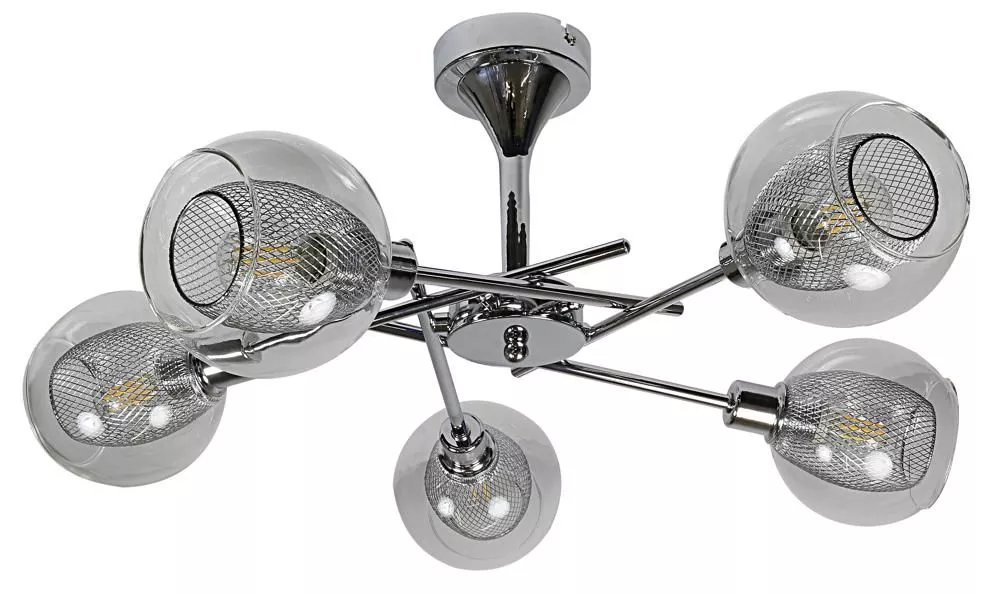 Zkrášlete svůj interiér se závěsným svítidlem OZZO! Čirá skleněná stínidla s kovovým vnitřním košem rozptylují světlo do všech stran a vytvářejí jemnou, vyváženou atmosféru. Skvěle se hodí do ložnice nebo pracovny, kde podtrhne moderní charakter prostoru. Určeno pro 5 žárovek s paticí E14 a maximálním výkonem 40 W. Pro úsporu elektrické energie doporučujeme osadit úspornou LED žárovkou. Krytí IP20 značí vhodnost použití v interiéru.