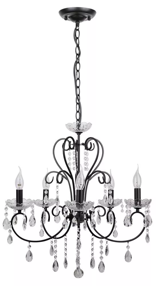 Vneste do svého interiéru okázalost s pětiramenným lustrem AURORA, jehož velkolepý anglický design zdobený křišťály budí respekt. Černá kovová konstrukce je zavěšena na silném řetězu a vyznačuje se hranatým profilem ramen, která jsou bohatě zdobená lesklými křišťály. Tento lustr je navržen jako hlavní a dominantní osvětlení do velkých banketních sálů nebo klasicky zařízených obývacích pokojů, kde zajistí silný a slavnostní dojem. Určeno pro 5 žárovek s paticí E14 a maximálním výkonem 40 W. Pro úsporu el. energie doporučujeme osadit úspornou LED žárovkou. Krytí IP20 značí vhodnost použití v interiéru.