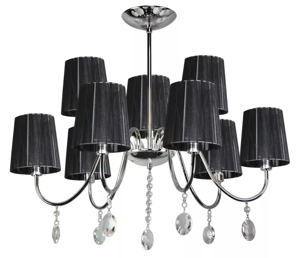 Zvýrazněte eleganci svého interiéru se závěsným svítidlem SORENTO! Chromovaná kovová konstrukce v kombinaci s černými textilními stínidly a dekorativními plastovými krystalky na každém rameni vytváří sofistikovaný a noblesní prvek pro váš domov. Skvělé nad jídelní stůl, do obývacího pokoje nebo do vstupní haly, kde dodá prostoru luxusní atmosféru. Určeno pro 9 žárovek s paticí E14 a maximálním výkonem 40 W. Pro úsporu elektrické energie doporučujeme osadit úspornou LED žárovkou. Krytí IP20 značí vhodnost použití v interiéru.