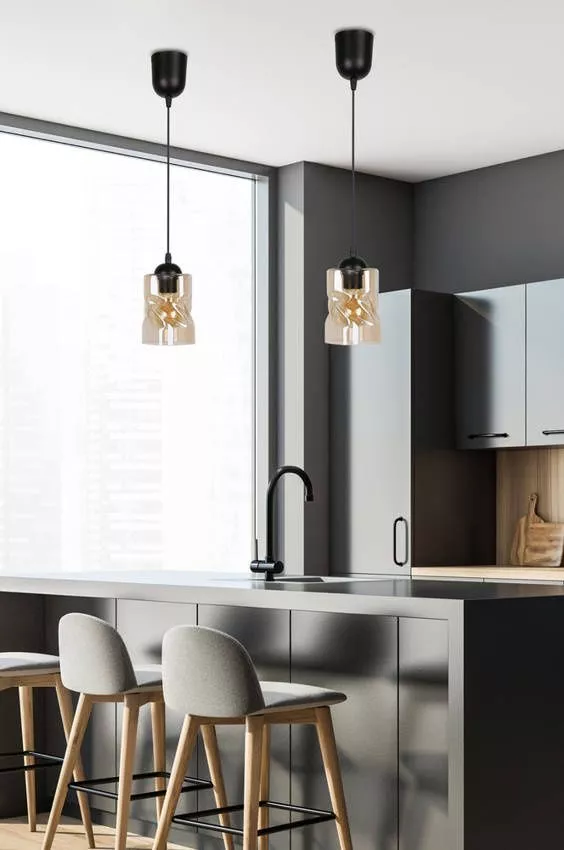 Moderní závěsné osvětlení FELIS - 1xE27, 60W, černé / jantarové sklo