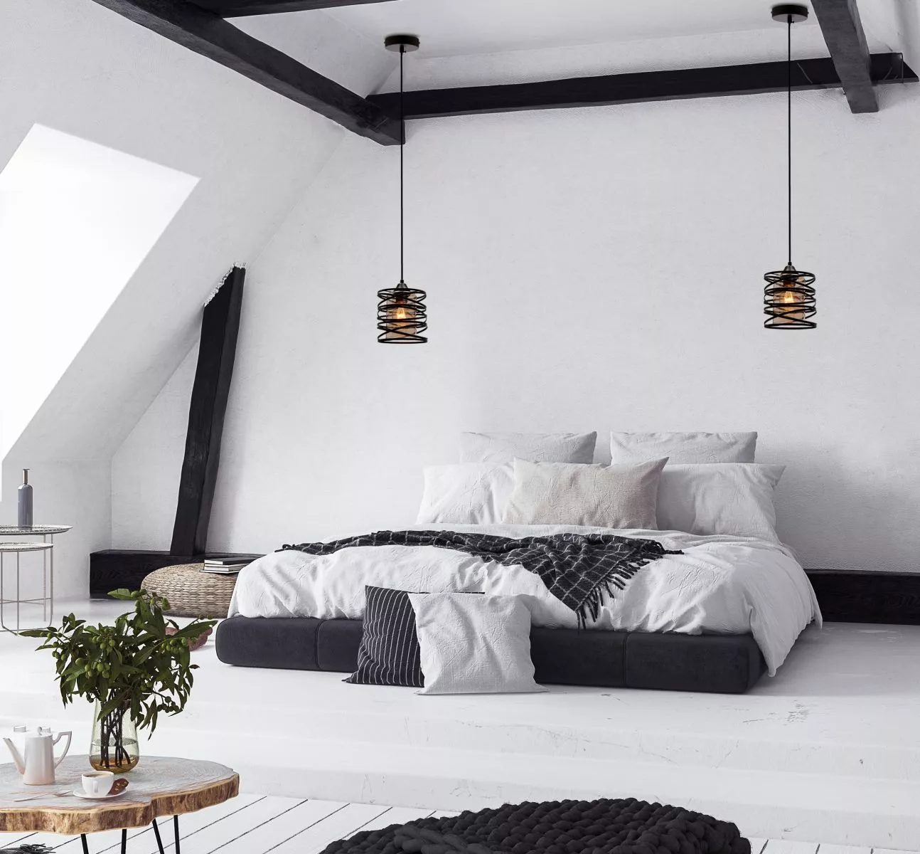 Moderní závěsné svítidlo ELUNA - 1xE27, 60W, černé / jantarové