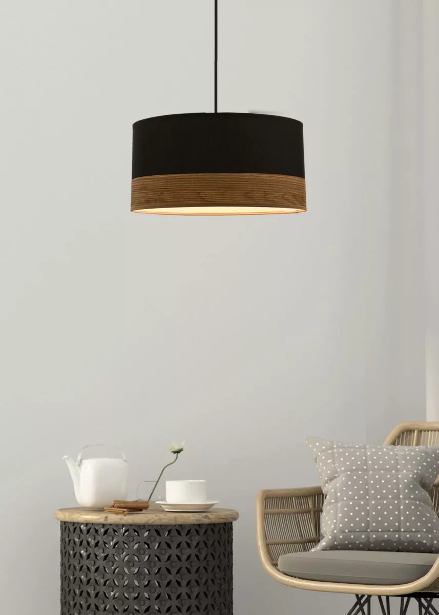 Dodejte svému interiéru hřejivou eleganci se závěsným světlem PORTO! Černé stínidlo s dýhovaným povrchem kombinuje moderní tvar se severskou přírodní estetikou a vytváří příjemně útulné světlo. Skvěle se hodí do obývacího pokoje, ložnice i chodby, kde poslouží jako výrazný a přitom harmonický doplněk. Určeno pro žárovku s paticí E27 a maximálním výkonem 60 W. Pro úsporu el. energie doporučujeme osadit úspornou LED žárovkou. Krytí IP20 značí vhodnost použití v interiéru.