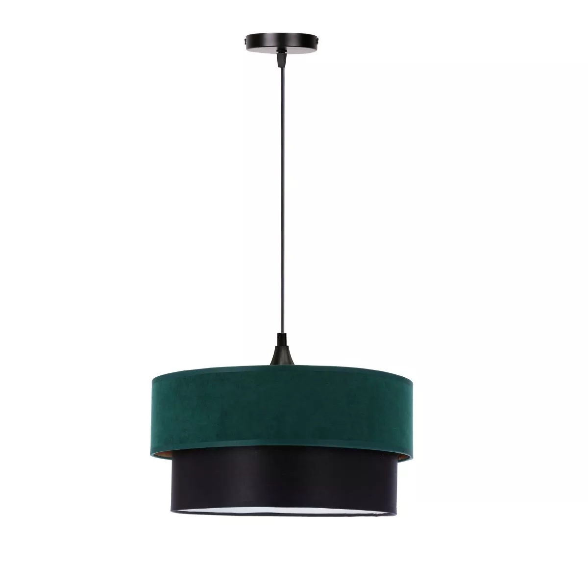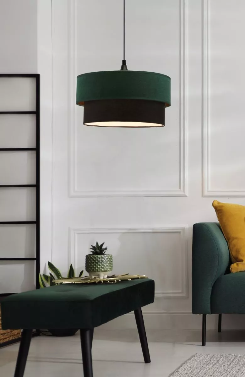 Zkrášlete svůj domov závěsným osvětlením SOLANTO! Dvojité válcové stínidlo — horní část v hladkém lahvově zeleném sametu a spodní část v čistě černé barvě — vytváří elegantní a zároveň moderní světelný prvek. Skvělé nad jídelní stůl, do kuchyně či obývacího pokoje, kde podtrhne osobitý charakter interiéru. Určeno pro žárovku s paticí E27 a maximálním výkonem 60 W. Pro úsporu el. energie doporučujeme osadit úspornou LED žárovkou. Krytí IP20 značí vhodnost použití v interiéru.