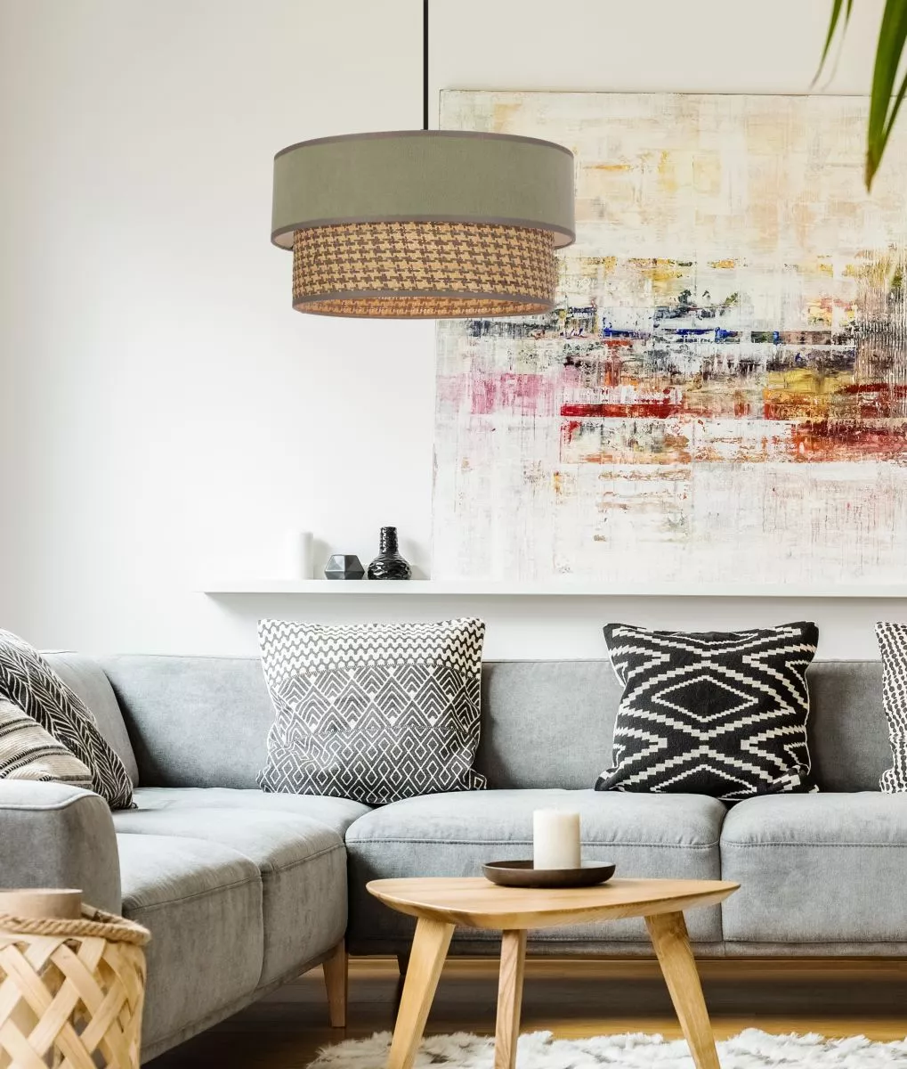Závěsné textilní svítidlo KARRARA - 1xE27, 60W, černé / šedé / béžové