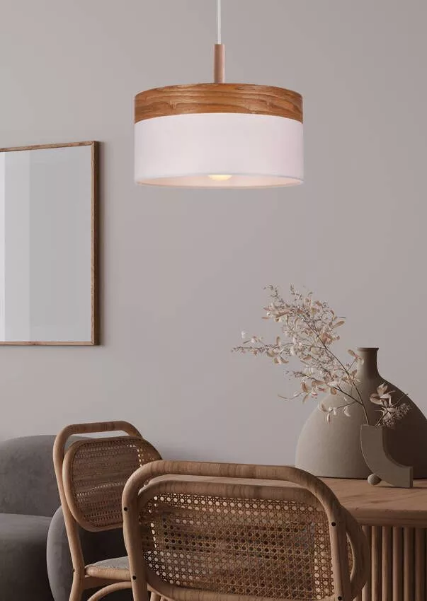 Objevte čistý a vyvážený styl s závěsným svítidlem ORTO! Kulaté stínidlo z textilie a dýhy vnese do prostoru skandinávskou eleganci. Ideální pro zavěšení v obývacím pokoji, v ložnici nebo nad menším jídelním stolem. Určeno pro žárovku s paticí E27 a maximálním výkonem 60 W. Pro úsporu el. energie doporučujeme osadit úspornou LED žárovkou. Krytí IP20 značí vhodnost použití v interiéru.
