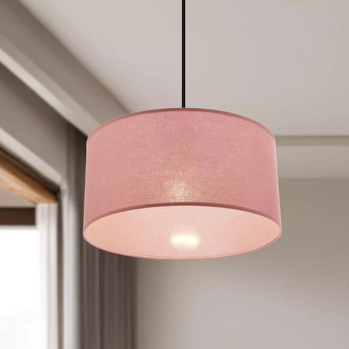Závěsný kulatý lustr SHANTI - 1xE27, 40W, černý / vřesový růžový