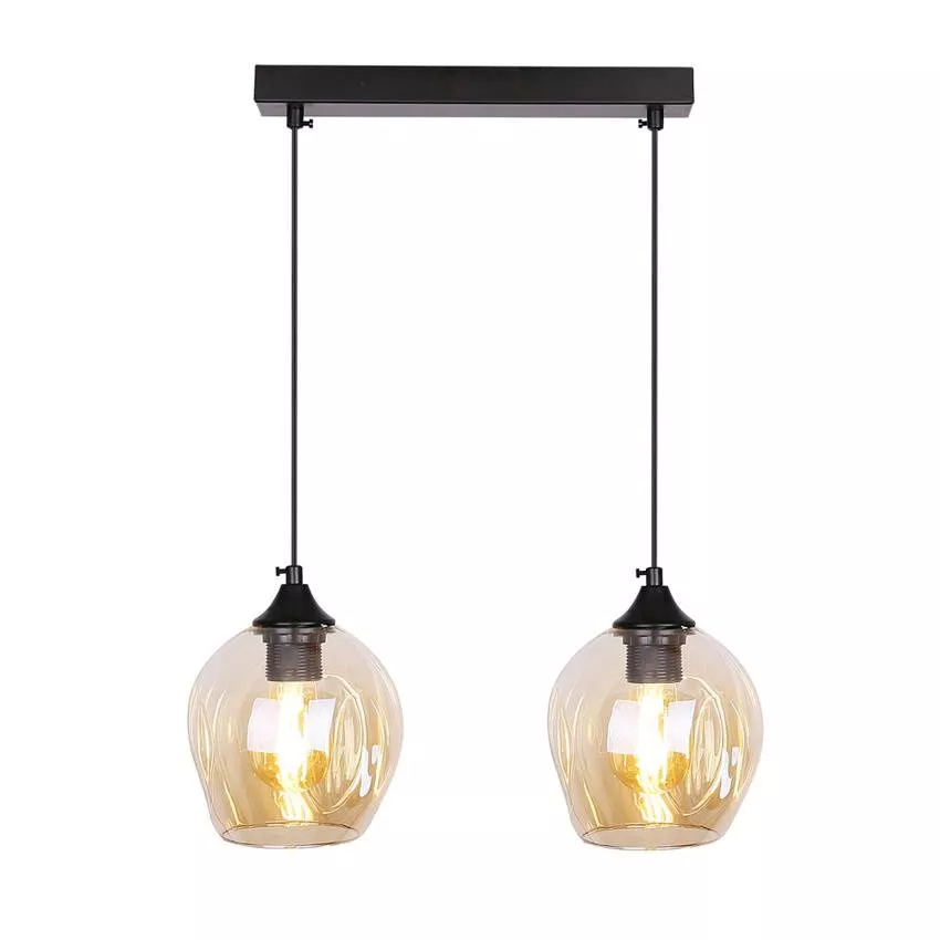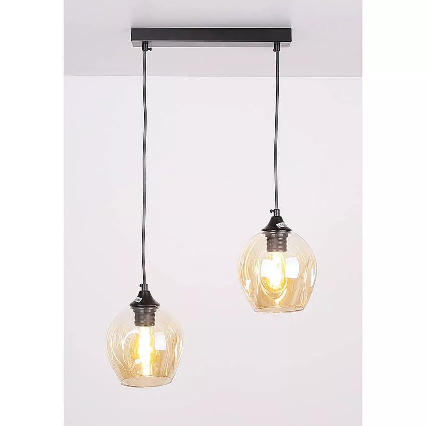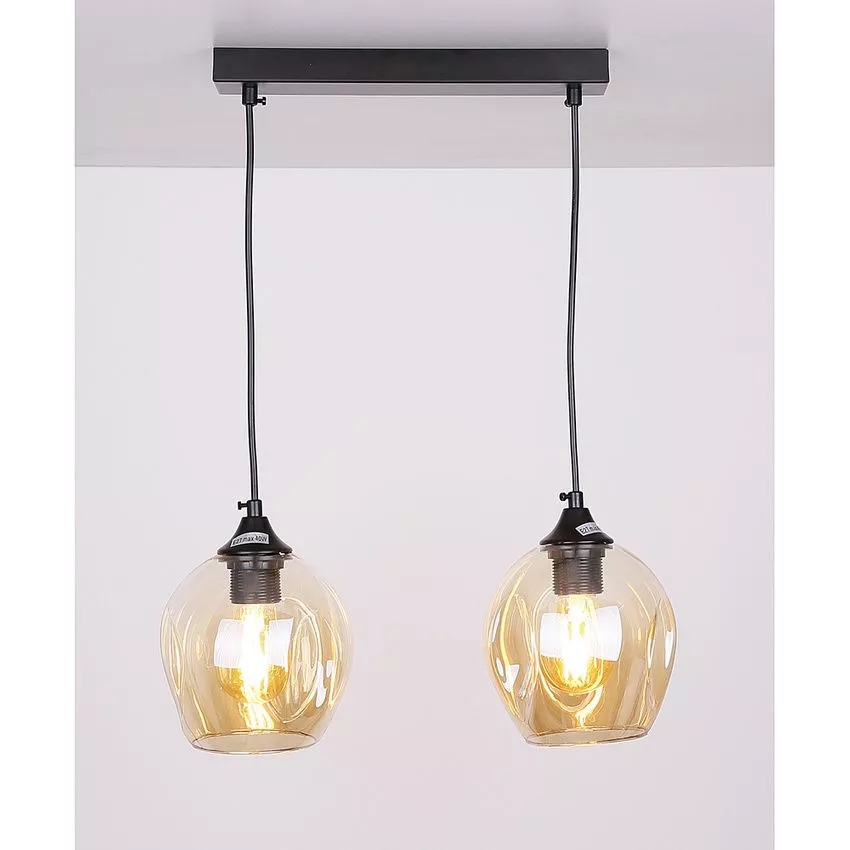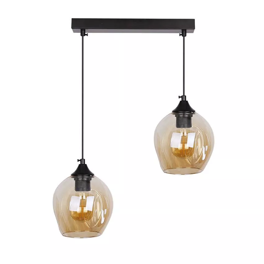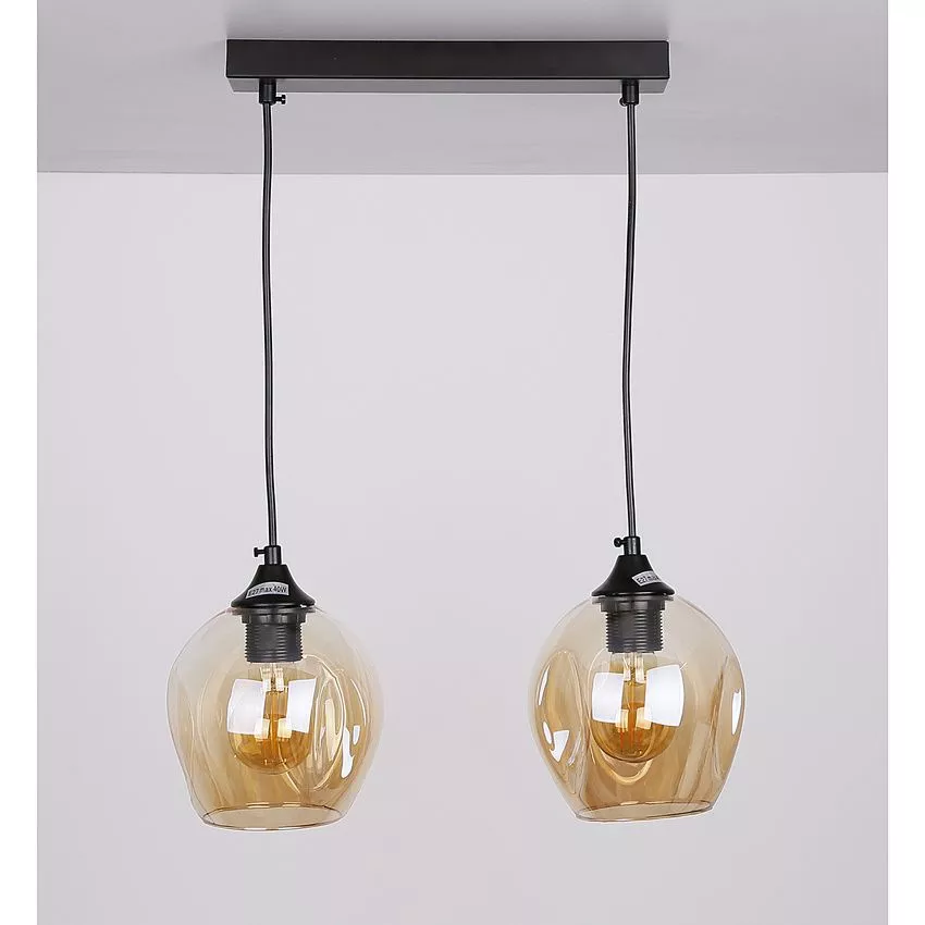 Závěsné designové svítidlo nad jídelní stůl ASPA - 2xE27, 40W, černé / jantarové