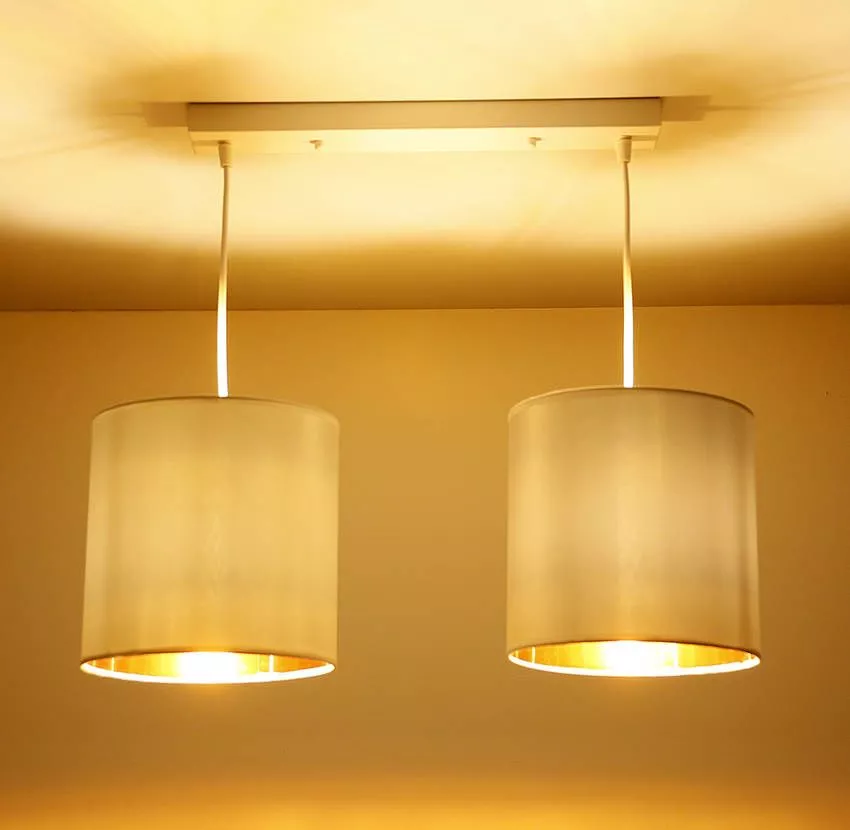 Objevte moderní eleganci s osvětlením ATLANTA! Textilní stínidla v kombinaci bílé a zlaté barvy vytváří jemnou hru světla a dodává prostoru luxusní nádech. Ideální nad jídelní stůl, kde se stane nepřehlédnutelným prvkem a dodá prostoru šmrnc i jiskru. Určeno pro 2 žárovky s paticí E27 a maximálním výkonem 40 W každá. Pro úsporu el. energie doporučujeme osadit úspornou LED žárovkou. Krytí IP20 značí vhodnost použití v interiéru.