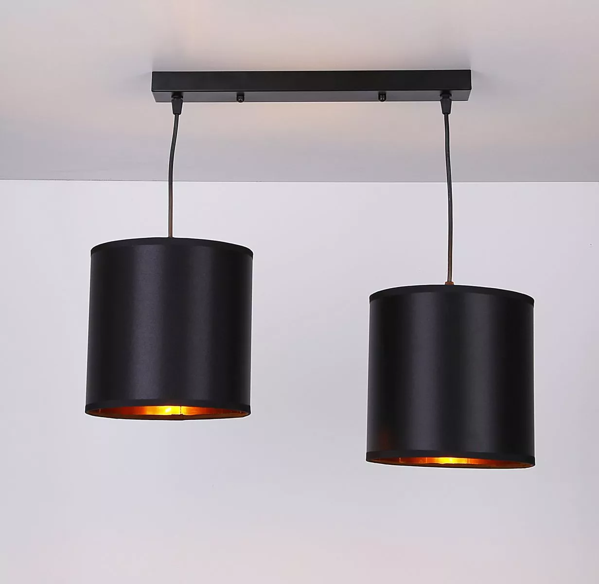 Objevte moderní eleganci s osvětlením CANDIDA! Textilní stínidla v kombinaci černé a zlaté barvy vytváří jemnou hru světla a dodává prostoru luxusní nádech. Skvěle se hodí nad jídelní stůl nebo barový pult. Určeno pro 2 žárovky s paticí E27 a maximálním výkonem 40 W. Pro úsporu el. energie doporučujeme osadit úspornou LED žárovkou. Krytí IP20 značí vhodnost použití v interiéru.