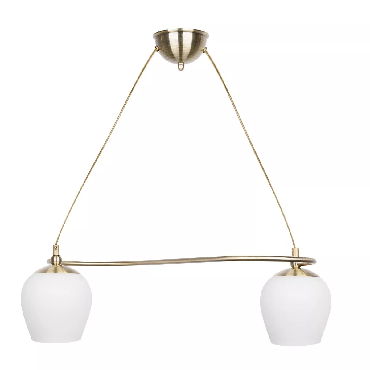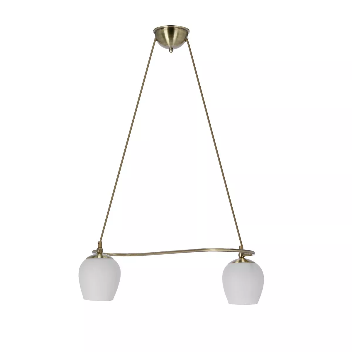Zkrášlete svůj interiér se závěsným svítidlem SERANO! Patinovaný kovový rám poskytuje nádech tradiční elegance, zatímco 2 bílá stínidla šíří světlo rovnoměrně a jemně. Vhodné nad jídelní stůl, kde bude sloužit jako stylový akcent prostoru. Určeno pro 2 žárovky s paticí E27 a maximálním výkonem 60 W. Pro úsporu el. energie doporučujeme osadit úspornou LED žárovkou. Krytí IP20 značí vhodnost použití v interiéru.