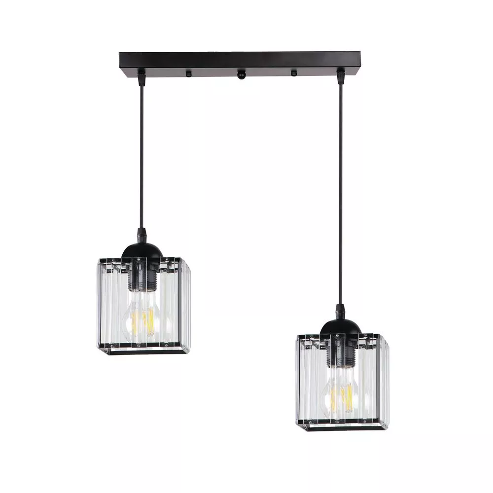 Závěsné osvětlení nad jídelní stůl GLASSIA - 2xE27, 40W, černé / čiré