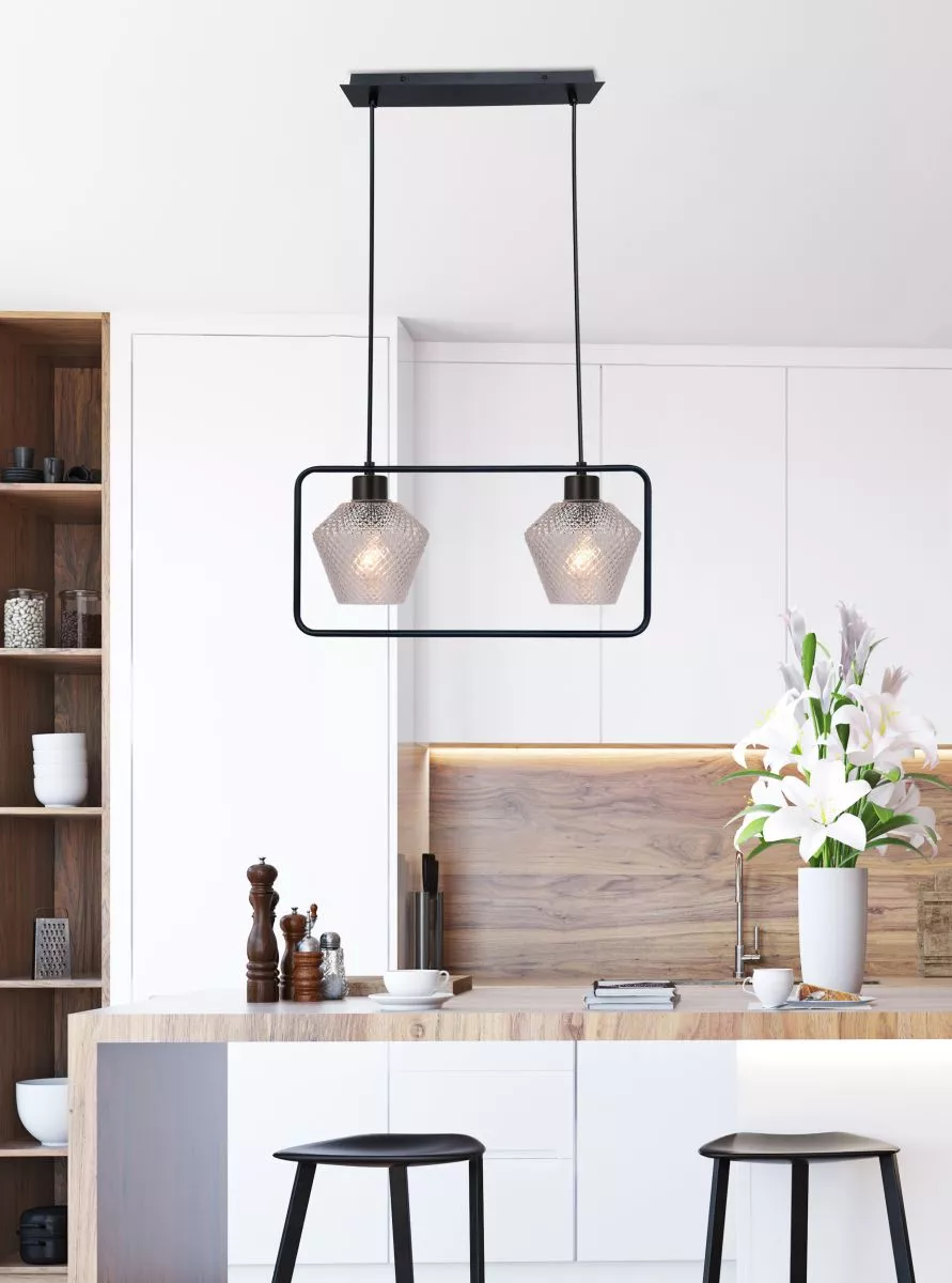 Závěsné osvětlení nad jídelní stůl NIKO - 2xE27, 40W, černé / čiré