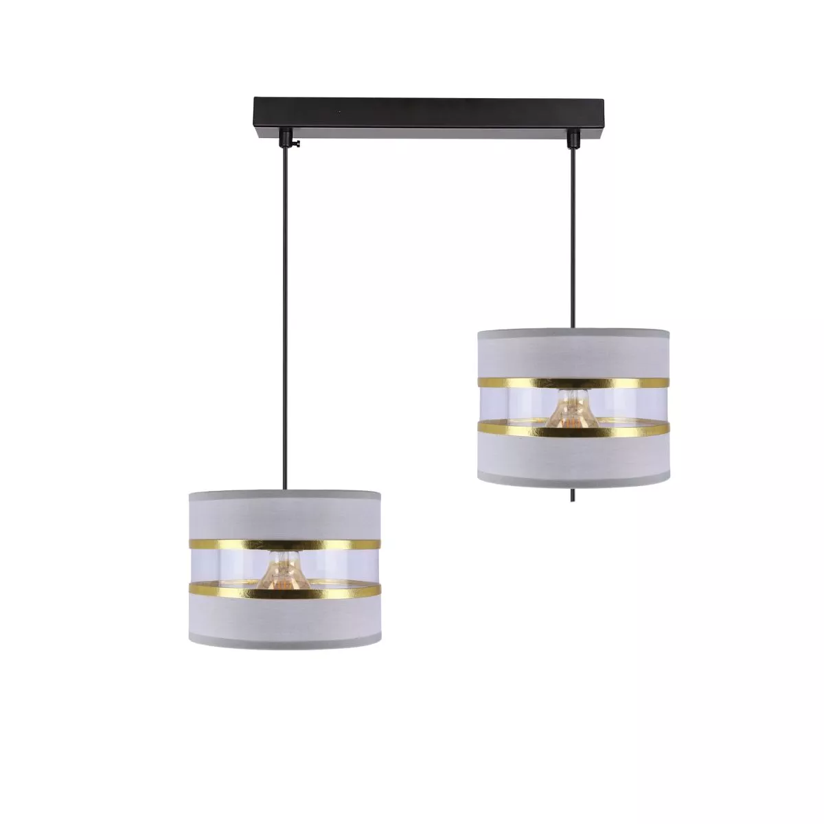 Zvýrazněte svůj interiér moderním svítidlem PANDY! Textilní stínidla se zlatými proužky působí elegantně a dodává prostoru luxusní nádech. Určeno pro 2 žárovky s paticí E27 a maximálním výkonem 40 W. Pro úsporu el. energie doporučujeme osadit úspornou LED žárovkou. Krytí IP20 značí vhodnost použití v interiéru.