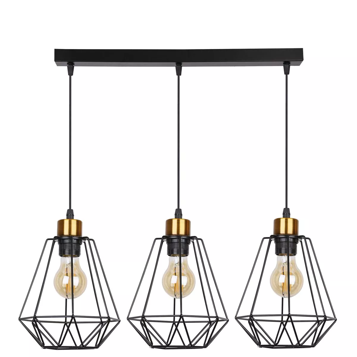 Závěsné industriální světlo nad jídelní stůl PRIMO 5 - 3xE27, 60W, zlaté / černé