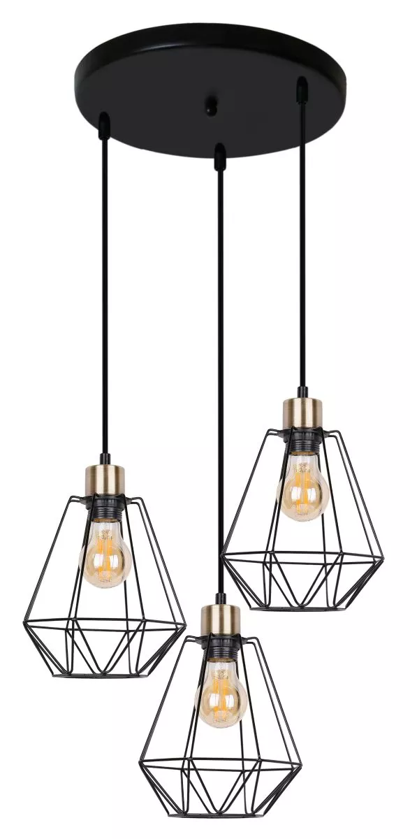 Zvýrazněte svůj interiér se závěsným svítidlem PRIMO! Kovová konstrukce v černém a patinovém provedení spojuje industriální sílu s elegantními liniemi. Skvěle se hodí do jídelny nebo obývacího pokoje, kde vyplní prostor stylově a s charakterem. Určeno pro 3 žárovky s paticí E27 a maximálním výkonem 60 W. Pro úsporu el. energie doporučujeme osadit úspornou LED žárovkou. Krytí IP20 značí vhodnost použití v interiéru.