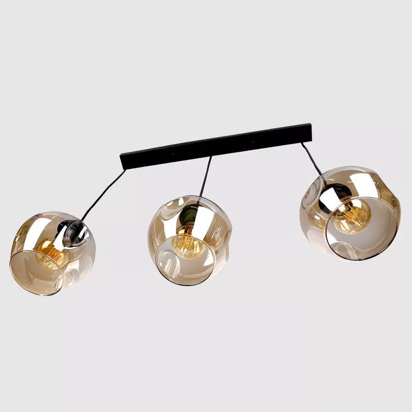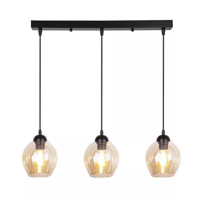 Závěsné designové svítidlo nad jídelní stůl ASPA - 3xE27, 40W, černé / jantarové