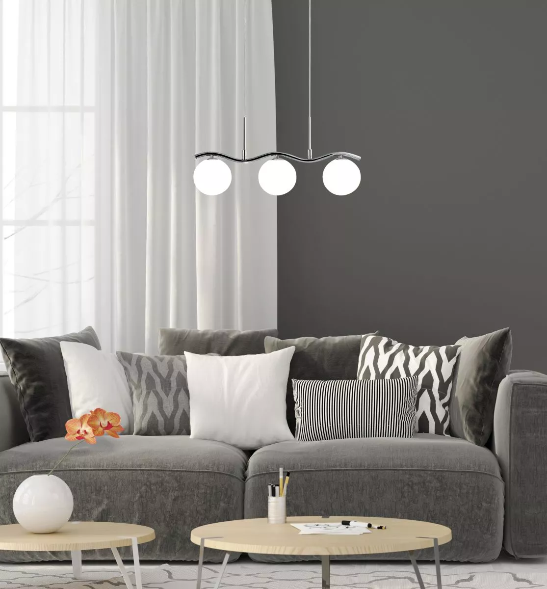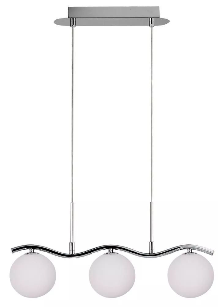 Zkrášlete svůj domov se závěsným světlem RAMON! Kovová konstrukce v chromovaném provedení s bílými stínidly působí čistě a elegantně. Ideální nad jídelní stůl, kde se stane středobodem prostoru a dodá interiéru rafinovaný charakter. Určeno pro 3 žárovky s paticí G9 a maximálním výkonem 20 W. Pro úsporu el. energie doporučujeme osadit úspornou LED žárovkou. Krytí IP20 značí vhodnost použití v interiéru.