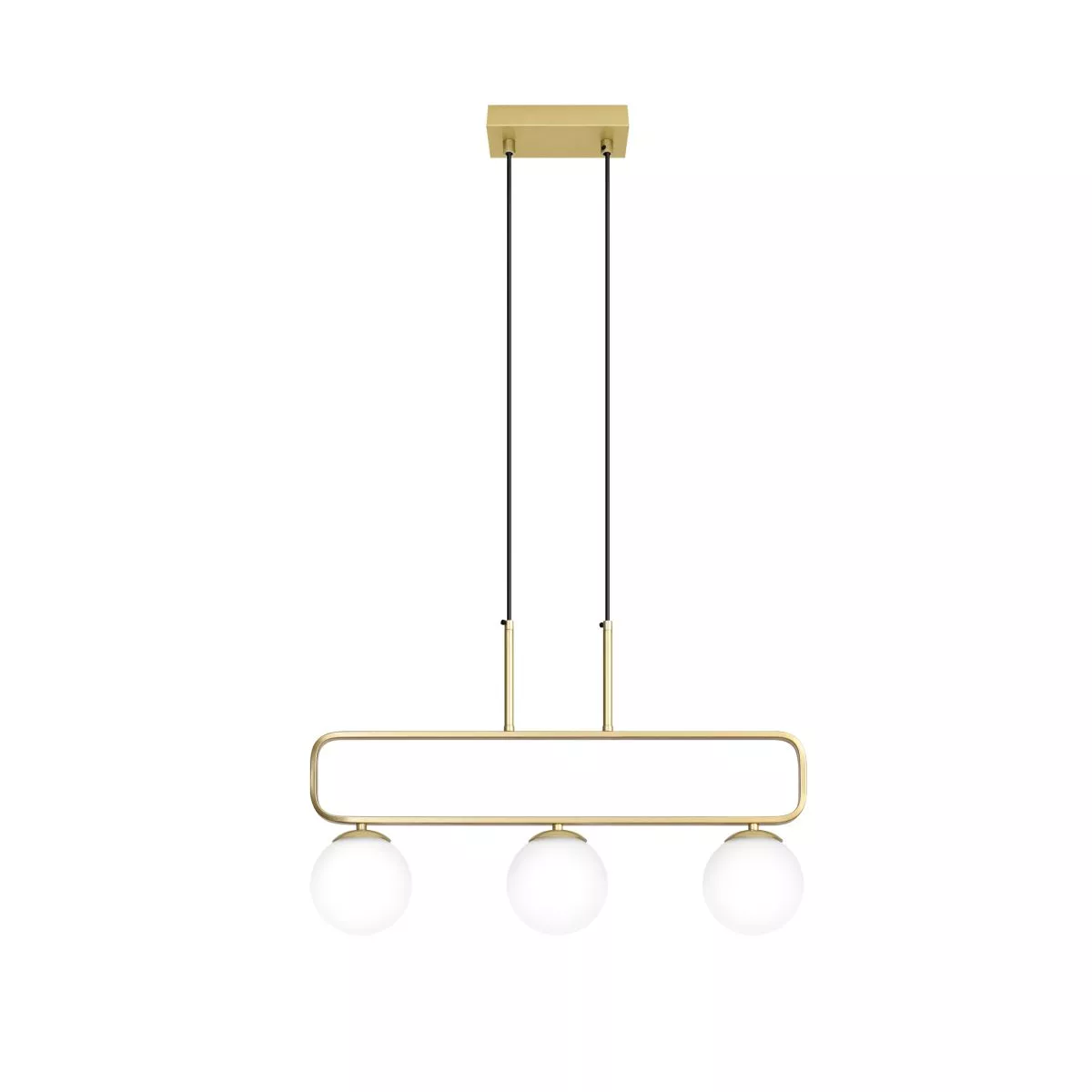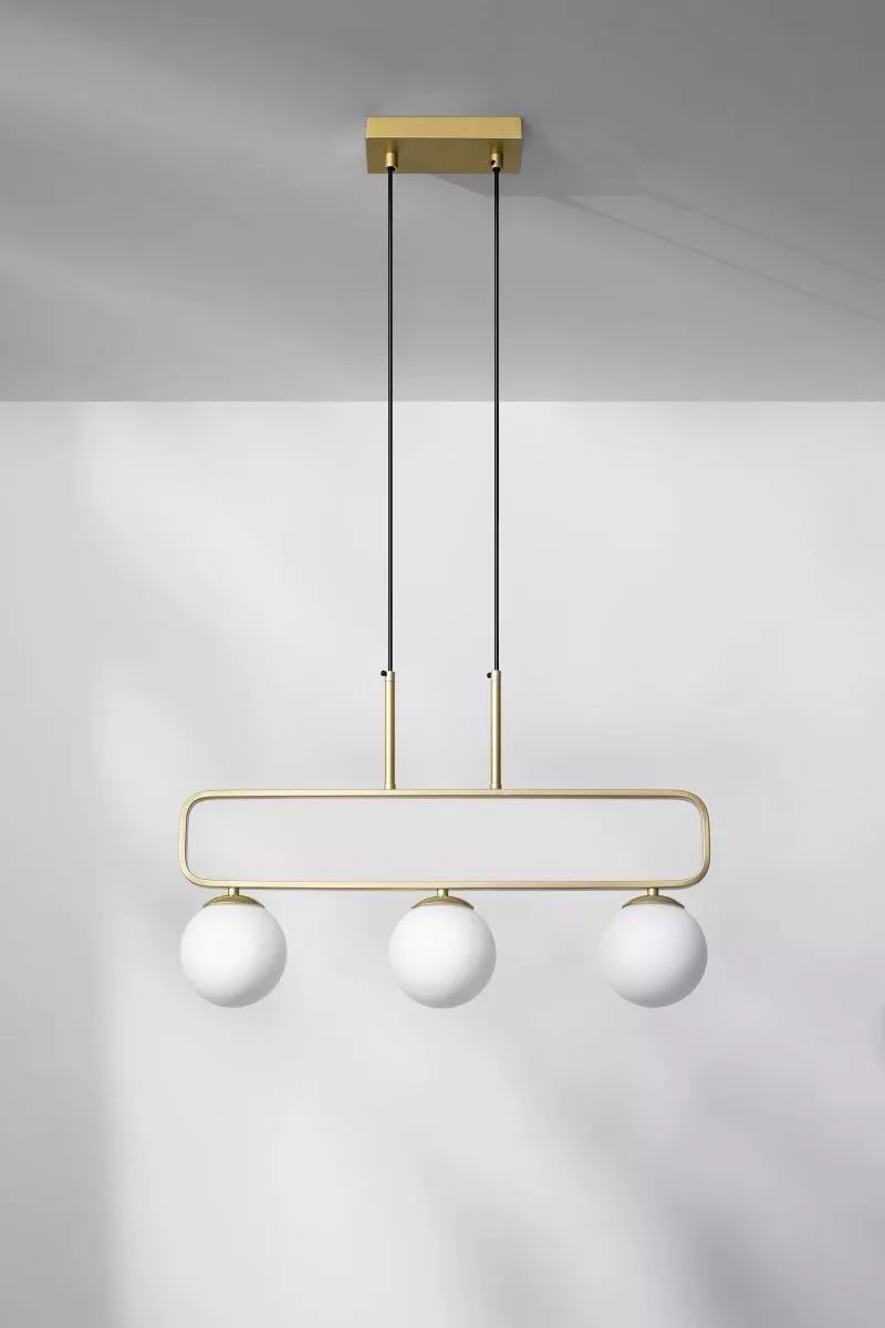 Vneste do jídelny moderní eleganci se závěsným svítidlem JOVE v kombinaci mosazného kovu a bílých skleněných stínidel. Lehká konstrukce s 3 kulatými stínidly vytváří jemné rozptýlené světlo. Ideální volba nad jídelní stůl pro útulnou a harmonickou atmosféru. Určeno pro 3 žárovky s paticí G9 a maximálním výkonem 20 W. Pro úsporu el. energie doporučujeme osadit úspornou LED žárovkou. Krytí IP20 značí vhodnost použití v interiéru.