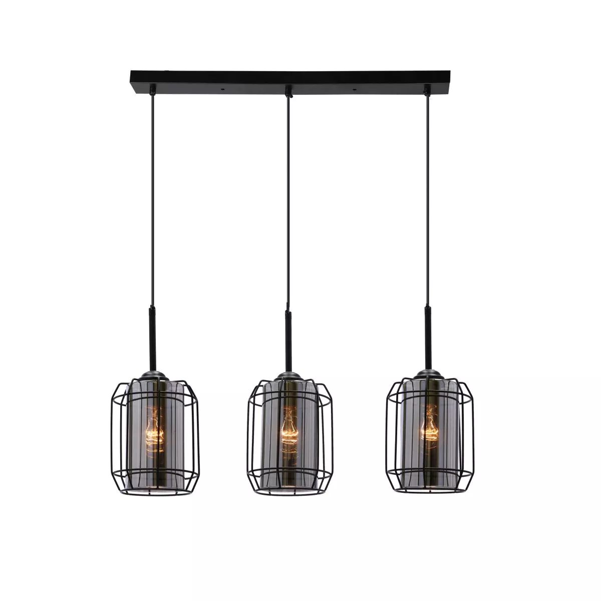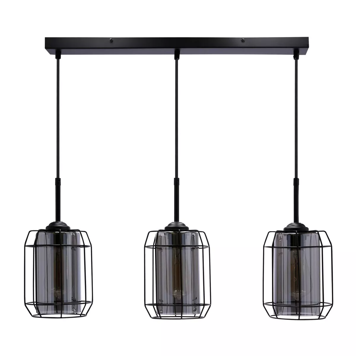 Závěsné svítidlo nad jídelní stůl JONERA - 3xE27, 40W, černé / kouřové sklo
