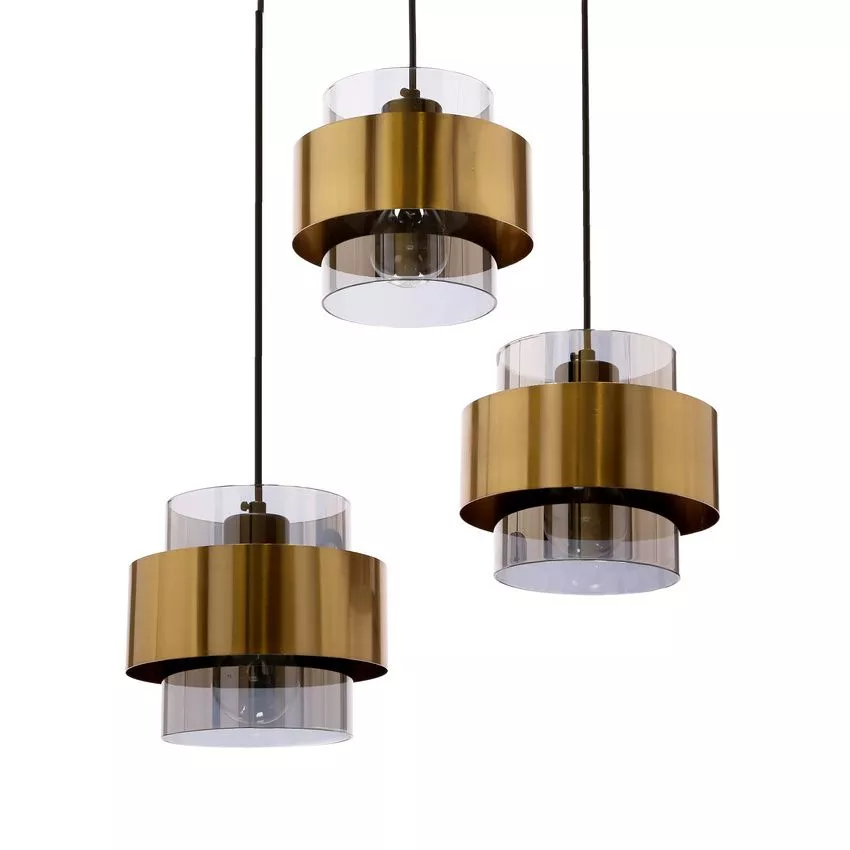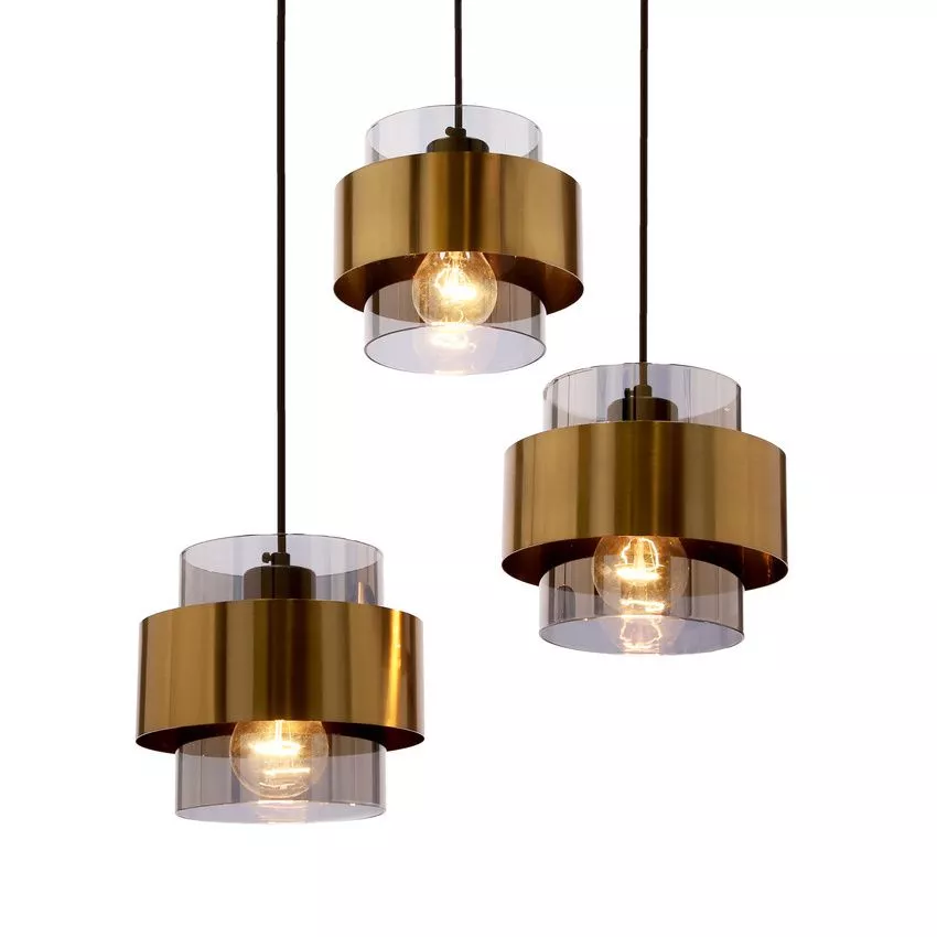 Zkrášlete svůj interiér závěsným světlem SPIEGA! 3 skleněná stínidla v kouřovém odstínu obklopená mosaznou kovovou konstrukcí tvoří dominantní světelný prvek. Ideální nad jídelní stůl nebo do obývacího pokoje, kde přinese nádech elegance a hloubku prostoru. Určeno pro 3 žárovky s paticí E27 a maximálním výkonem 60 W. Pro úsporu el. energie doporučujeme osadit úspornou LED žárovkou. Krytí IP20 značí vhodnost použití v interiéru.