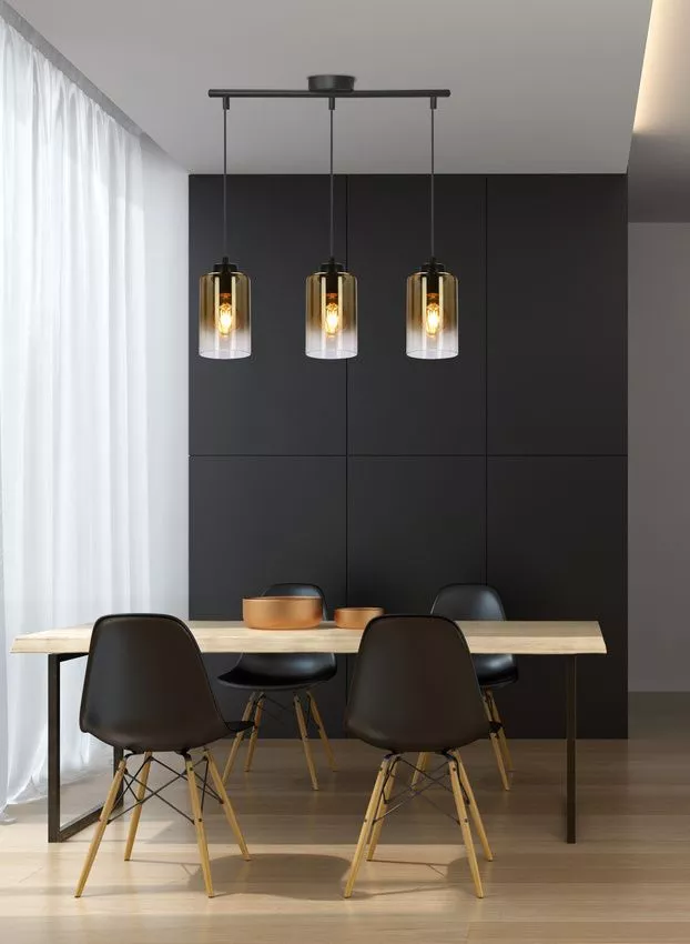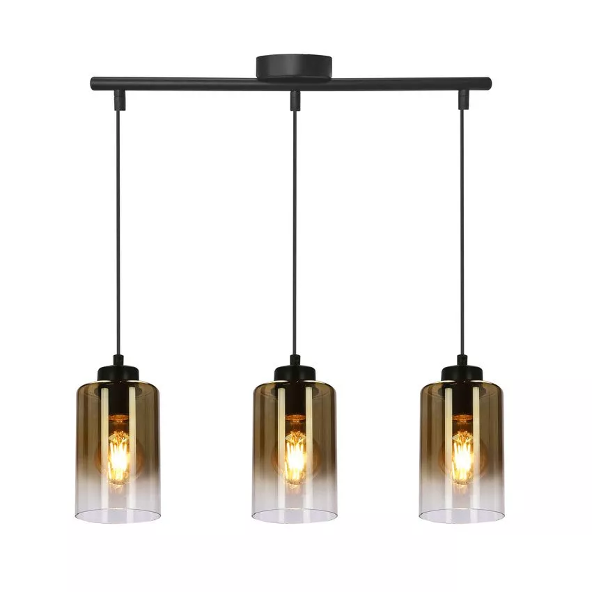 Závěsné moderní světlo nad jídelní stůl ASPRA - 3xE27, 60W, černé / jantarové