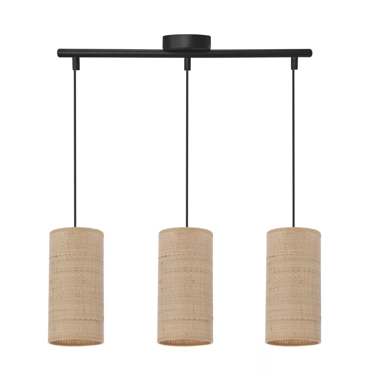 Ratanové závěsné osvětlení nad jídelní stůl FLERI - 3xE27, 60W, černé / béžové