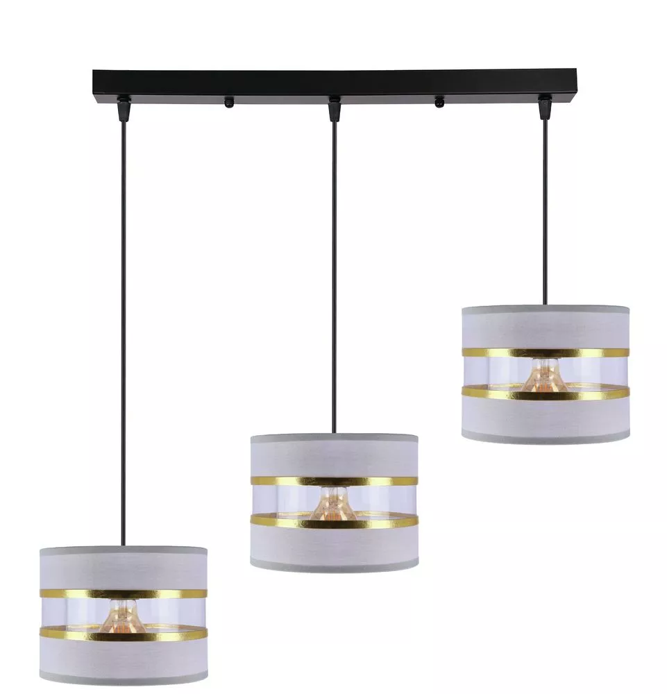 Zvýrazněte svůj interiér moderním svítidlem PANDY! Textilní stínidla se zlatými proužky působí elegantně a dodává prostoru luxusní nádech. Určeno pro 3 žárovky s paticí E27 a maximálním výkonem 40 W. Pro úsporu el. energie doporučujeme osadit úspornou LED žárovkou. Krytí IP20 značí vhodnost použití v interiéru.