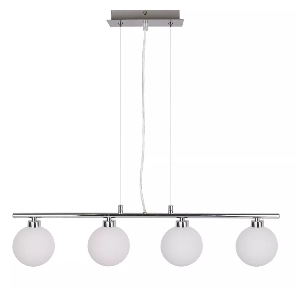 Zkrášlete svůj domov se závěsným osvětlením RAISA! Kovová konstrukce v chromovaném provedení s bílými stínidly působí čistě a elegantně. Ideální nad jídelní stůl, kde se stane středobodem prostoru a dodá interiéru rafinovaný charakter. Určeno pro 4 žárovky s paticí G9 a maximálním výkonem 40 W. Pro úsporu el. energie doporučujeme osadit úspornou LED žárovkou. Krytí IP20 značí vhodnost použití v interiéru.