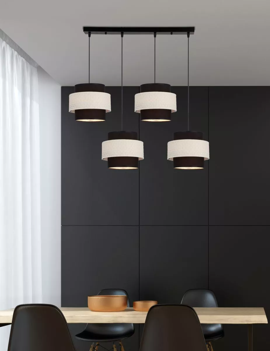 Závěsné moderní světlo nad jídelní stůl BENTA - 4xE27, 40W, černé / krémové