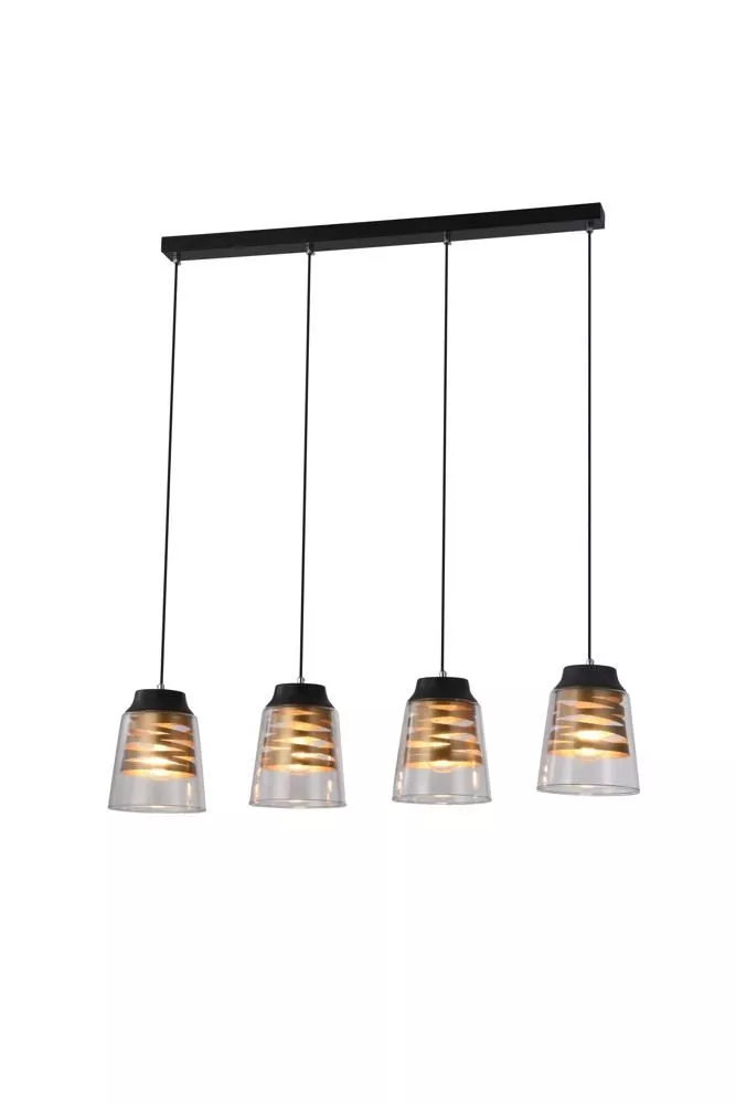 Moderní závěsné svítidlo FRESNO - 4xE27, 60W, černé / zlaté / čiré