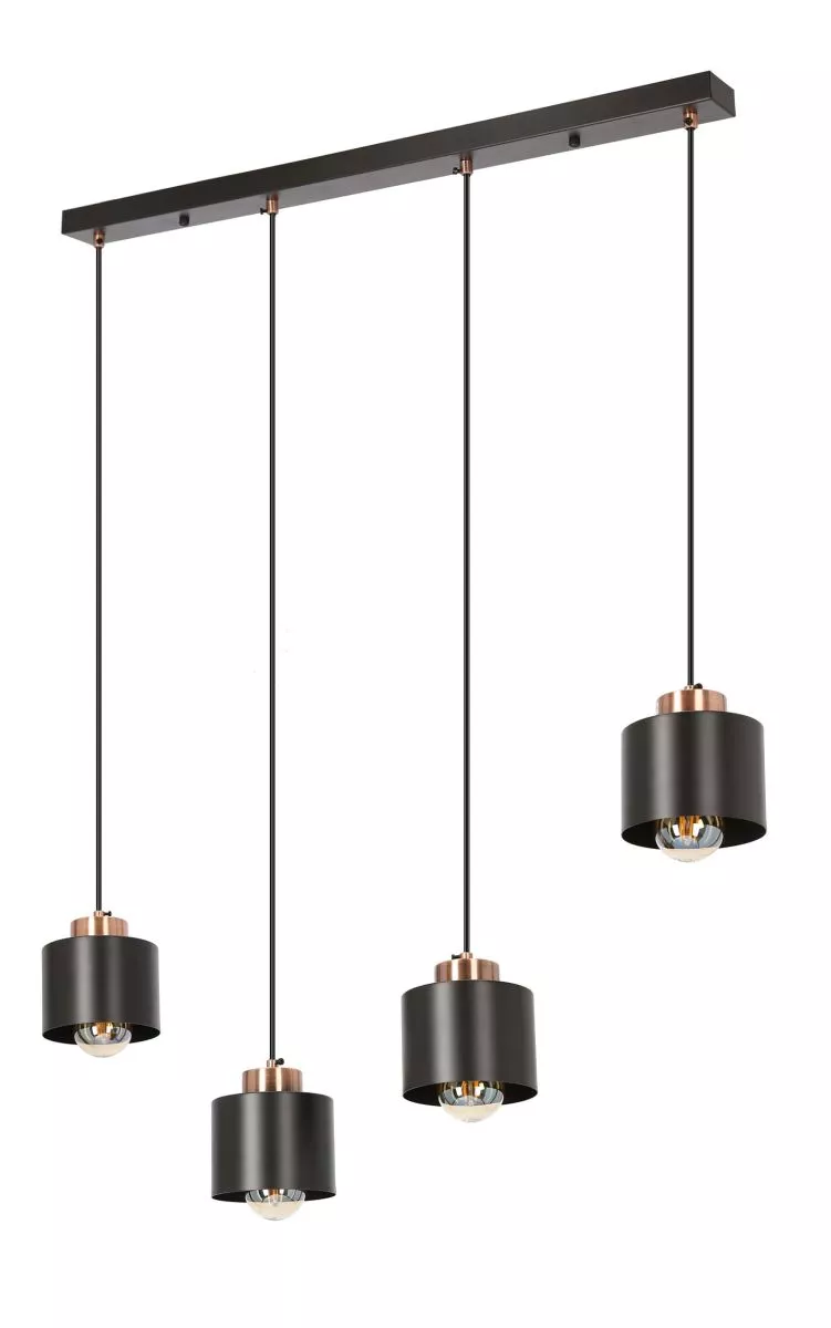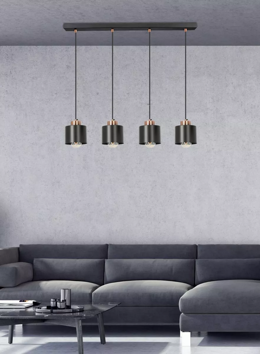 Loftové závěsné svítidlo nad jídelní stůl OLENA - 4xE27, 60W, černé / měděné