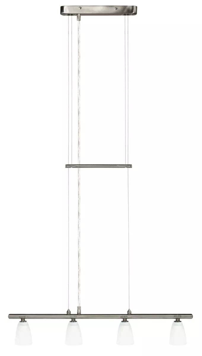 Zkrášlete svůj interiér se závěsným svítidlem PARMA! Kovová konstrukce v matném niklu nese bílá skleněná stínidla, která společně vytvářejí elegantní a nadčasový vzhled. Vhodné nad jídelní stůl, kde přinese decentní světlo a klidnou atmosféru. Určeno pro 4 žárovky s paticí G9 a maximálním výkonem 40 W. Pro úsporu el. energie doporučujeme osadit úspornou LED žárovkou. Krytí IP20 značí vhodnost použití v interiéru.