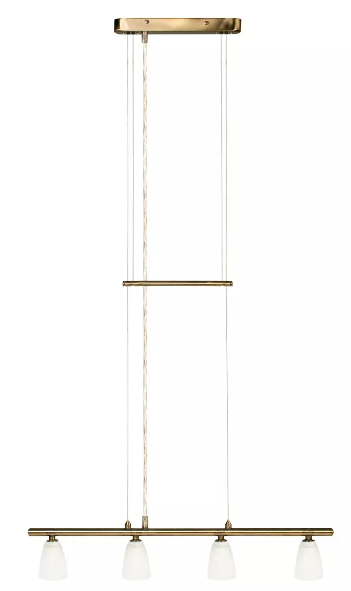Zkrášlete svůj interiér se závěsným svítidlem PARMA! Kovová konstrukce se zlatou patinou nese bílá skleněná stínidla, která společně vytvářejí elegantní a nadčasový vzhled. Vhodné nad jídelní stůl, kde přinese decentní světlo a klidnou atmosféru. Určeno pro 4 žárovky s paticí G9 a maximálním výkonem 40 W. Pro úsporu el. energie doporučujeme osadit úspornou LED žárovkou. Krytí IP20 značí vhodnost použití v interiéru.