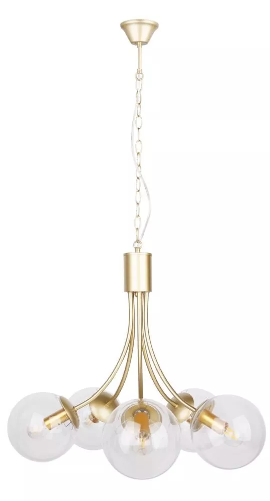 Závěsné pětiramenné svítidlo na řetězu DANI - 5xE14, 40W, mosazné / čiré