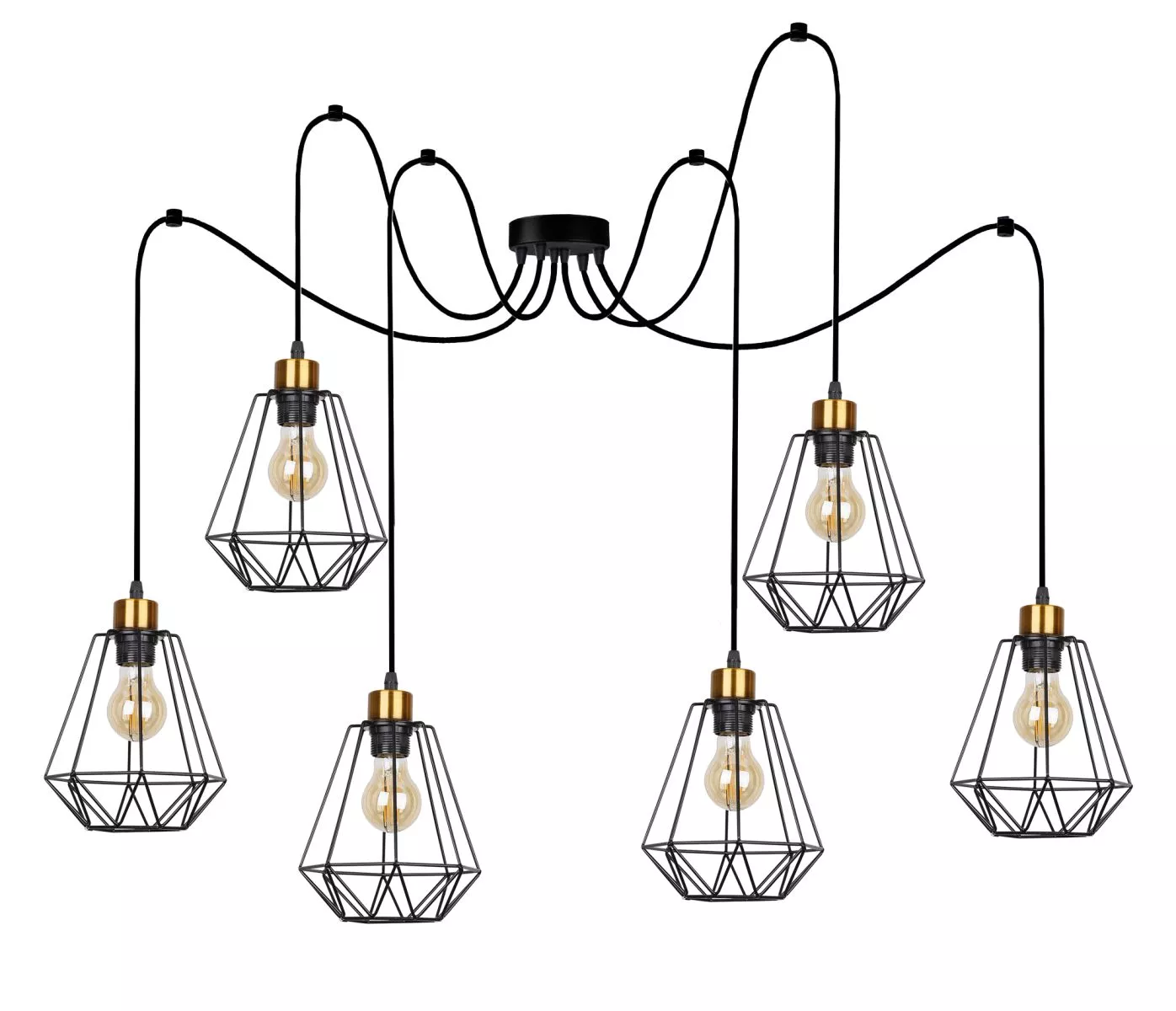 Závěsné světlo v industriálním stylu PRIMO 9 - 6xE27, 60W, zlaté / černé