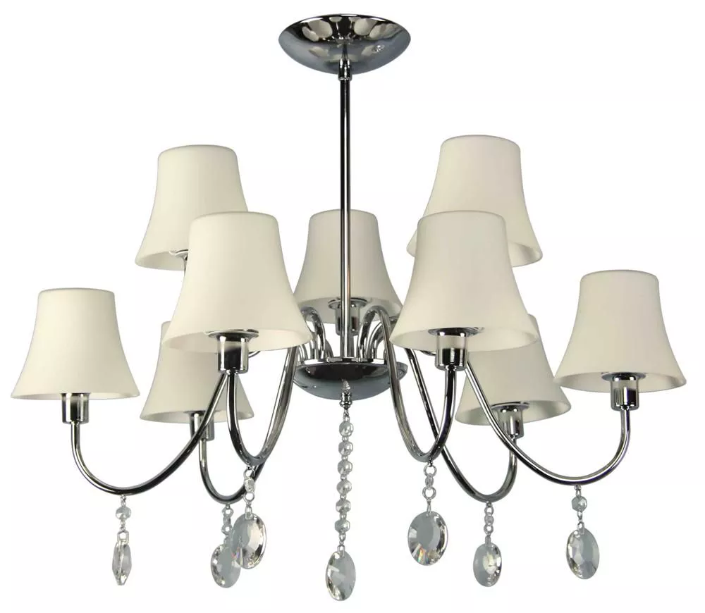Zvýrazněte eleganci svého interiéru se závěsným svítidlem SORENTO! Chromovaná kovová konstrukce v kombinaci s bílými textilními stínidly a dekorativními plastovými krystalky na každém rameni vytváří sofistikovaný a noblesní prvek pro váš domov. Skvělé nad jídelní stůl, do obývacího pokoje nebo do vstupní haly, kde dodá prostoru luxusní atmosféru. Určeno pro 9 žárovek s paticí E14 a maximálním výkonem 40 W. Pro úsporu elektrické energie doporučujeme osadit úspornou LED žárovkou. Krytí IP20 značí vhodnost použití v interiéru.