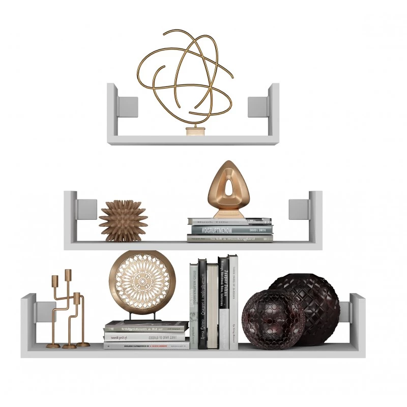 Set 3 závěsných poliček TARMO vám pomůže efektivně zaplnit prázdnou zeď. Poličky o šířce 40 cm, 60 cm a 80 cm jsou na každé straně vybaveny bočnicemi, které zpevňují konstrukci poliček a také zabraňují pádu knih či jiných předmětů.